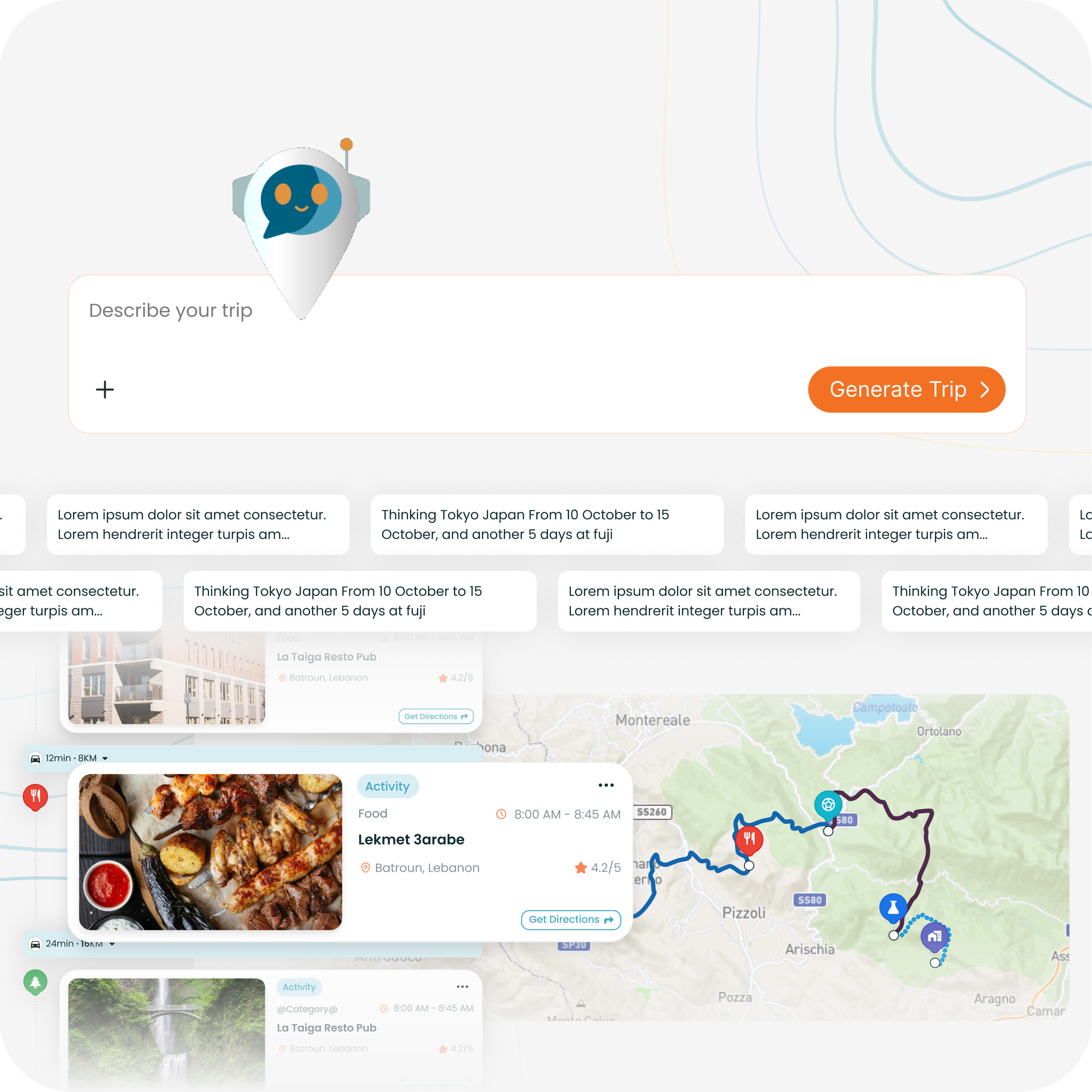 Instantly generate bookable, personalized itineraries across flights, hotels, activities, and transport.